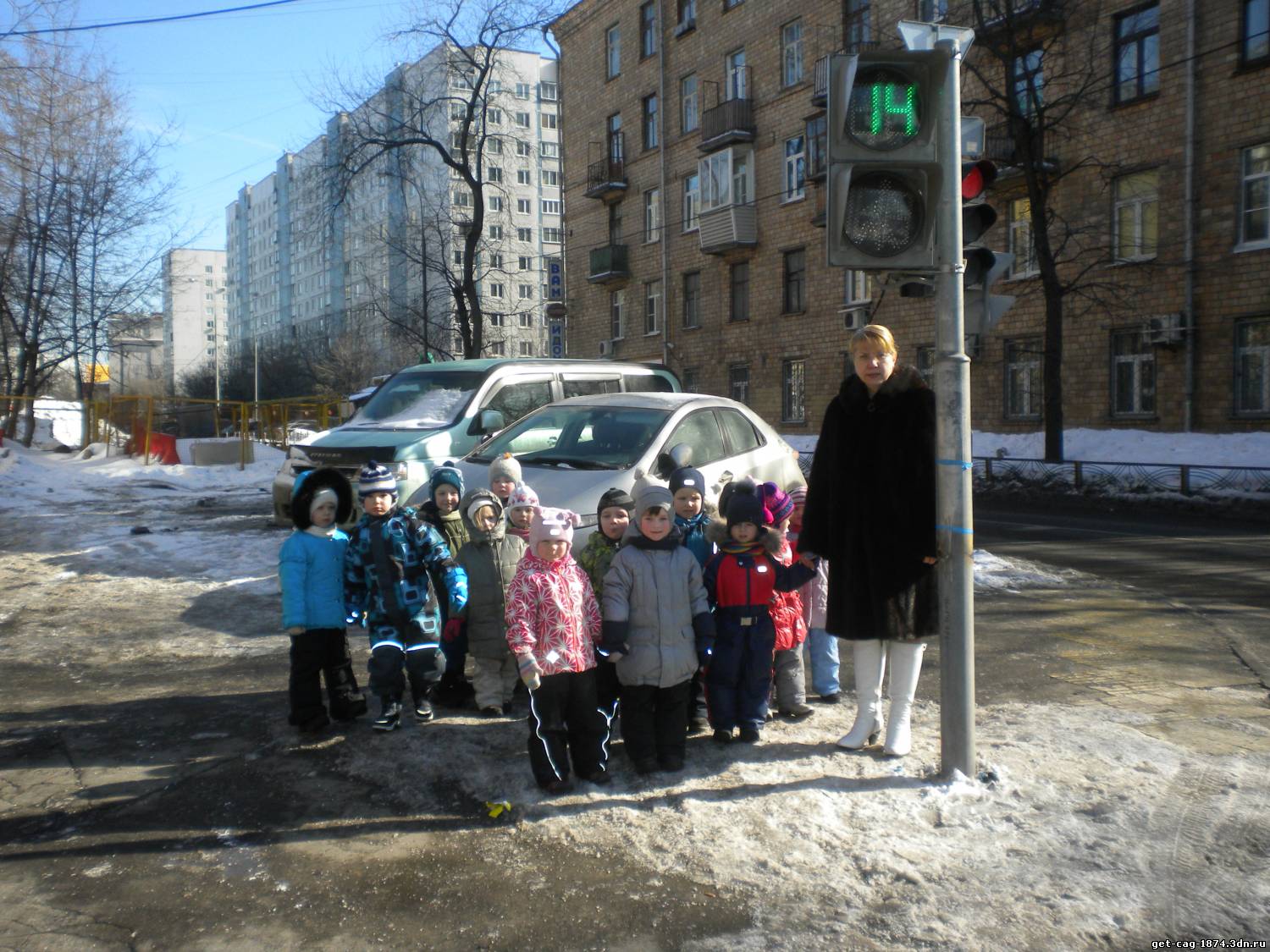 2 апреля 2013 года 2-я младшая группа № 3 (воспитатель Сорокина Г.В.) совершила экскурсию к светофору на пересечении улиц Академика Бочвара и Маршала Новикова.