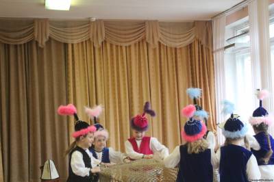 Дети спели казахскую народную песню и показали казахскую народную сказку, показали народные костюмы.