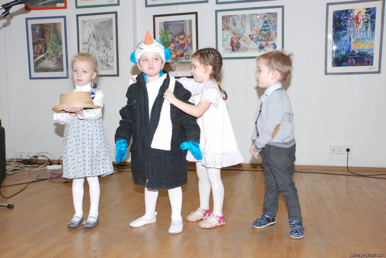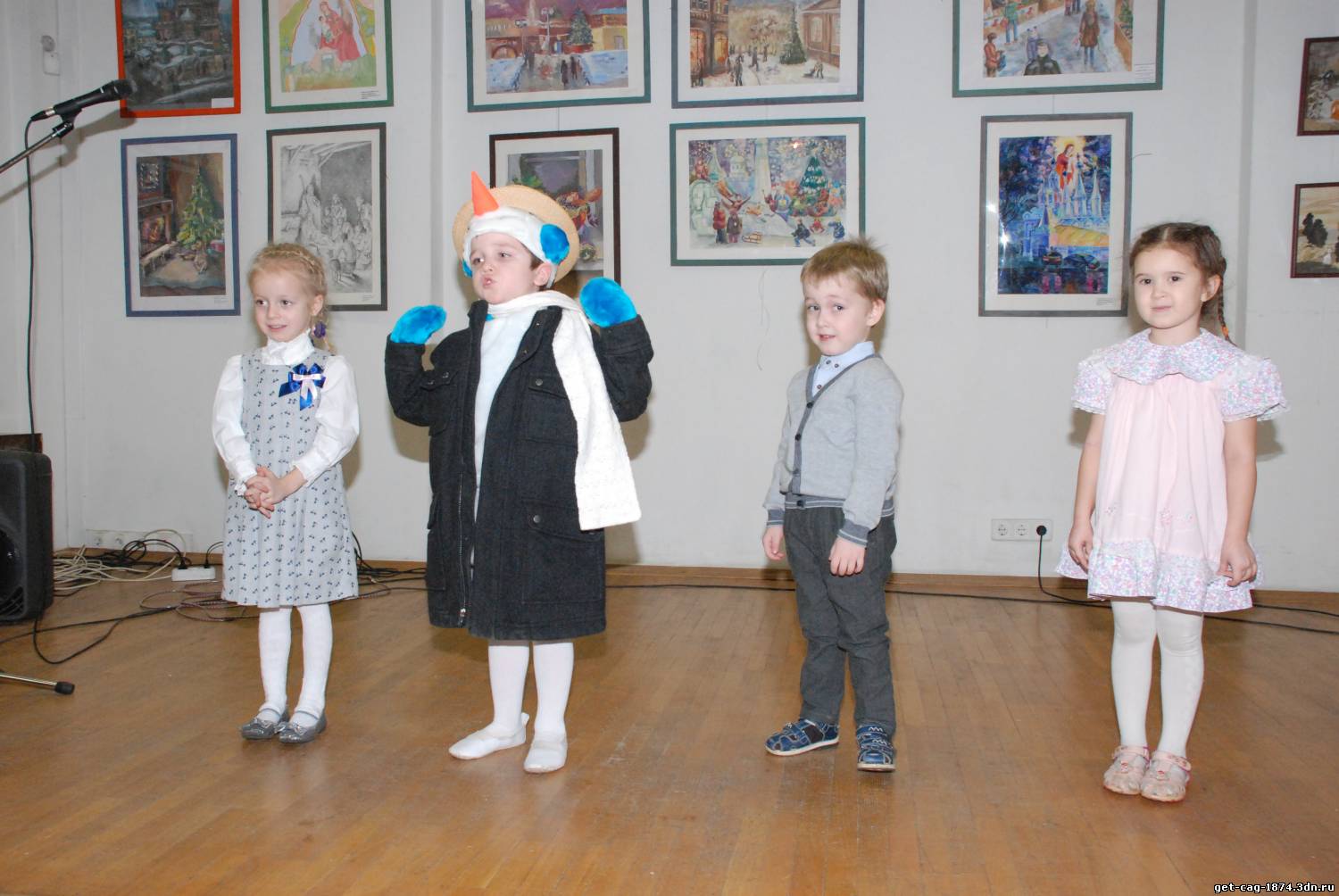 | 25 декабря 2013 года в выставочном зале "Ходынка" прошел конкурс творческих работ "Рождественский альбом", где дети средней группы № 3 представили мини сценку на стихотворение "Снеговик", которое читал Карасев Максим, а помогали ему Аксинья Кубарева, Нина Карчевская и Артем Федотов.